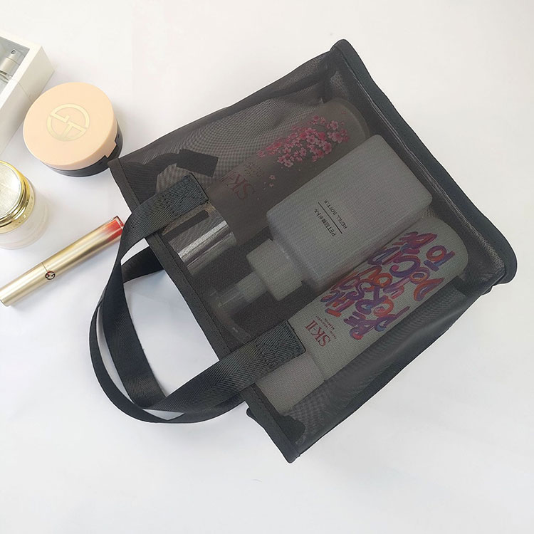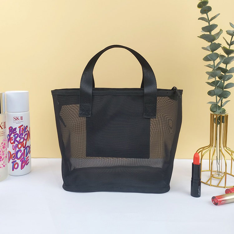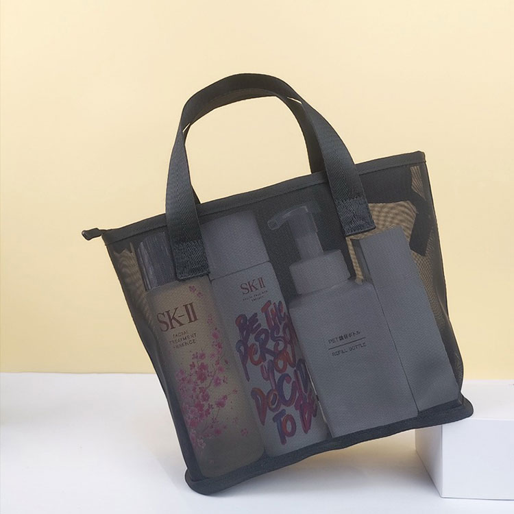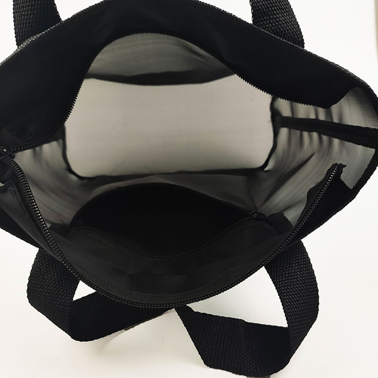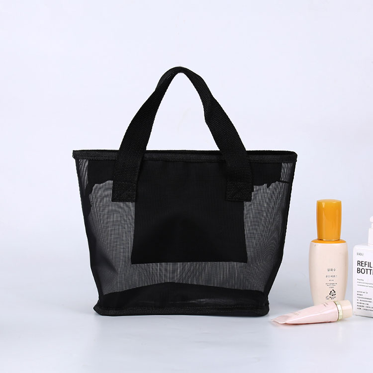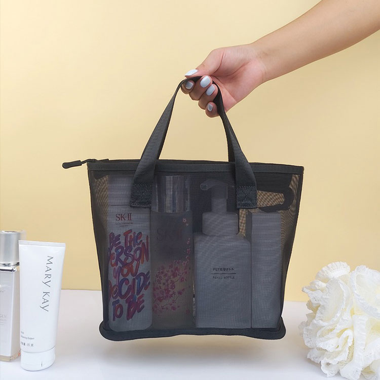 బ్లాక్ మెష్ హ్యాండిల్ బ్యాగ్ బలమైన, తేలికైన మెష్ ఫాబ్రిక్తో మృదువైన, దృఢమైన జిప్పర్తో తయారు చేయబడింది, ఇది మన్నికైనది మరియు త్వరగా ఆరిపోతుంది. ఇది స్వదేశీ మరియు విదేశాలలో వినియోగదారుల నుండి గొప్ప ఆదరణను పొందింది.